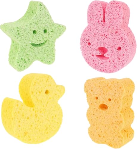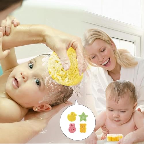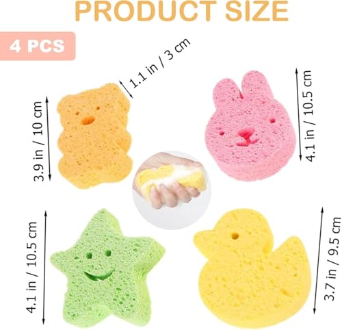 4 Pcs Baby Bath Sponges, Cute Baby Sponges for Bath Newborn Kids, Animal Shapes Natural Kids Bath Sponges for Infants, Gentle on Newborn and Toddler Skin(4 Colours) 【Package Content】You will get 4 pieces baby sponges for bath newborn Baby sponges quickly soften when wet and harden when dry, ensuring less bacterial growth for a cleaner bath time. This set includes four distinct animal shapes – star, duckling, bear, and bunny. (Green,Orange, Pink, Yellow) 【Natural & Gentle】Crafted from natural wood pulp fiber, these environmentally-friendly bath sponge kids won’t irritate delicate baby skin and provide a soft, gentle touch. 【Unique Design】Featured with the cartoon appearance, bring more fun to the kids bath. Thanks to the natural properties of this bath sponge, they are extremely soft against baby’s skin and suitable to use on all skin types for adults. 【Easy to Store】Our baby bath sponge is very safe and durable. The soft shape and compact size make this product easy to place and dry after use. You can use it again after washing and waiting for it to dry naturally. It is very convenient and can be used for a long time. 【Multi-purpose Sponge】Bath sponge kids not just for baths!Use our baby sponges for hair washing, body scrubbing, or even gentle baby massages. It will soften quickly when wet and harden when dry. Ensure Reduce bacterial growth, soft and comfortable materials make babies enjoy bathing.