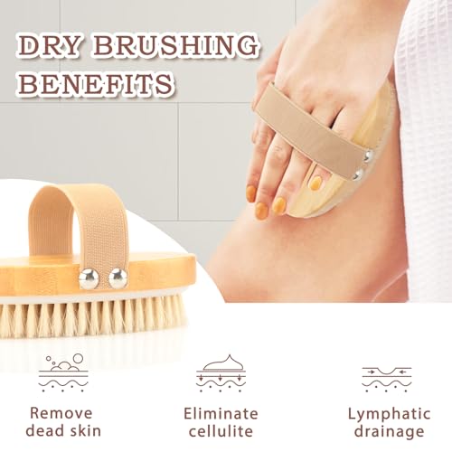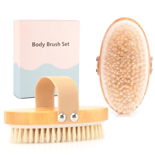 FREATECH 2-Pack Dry Brushing Body Brush, Natural Bristle Dry Skin Exfoliating Brush for Flawless Skin, Remove Cellulite, Improve Circulation and Lymphatic Drainage, Bath Shower Body Scrub