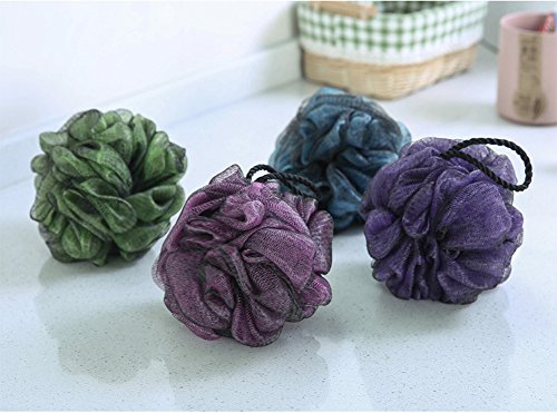 KFZR 4 Pack Large Exfoliating Body Shower Bath Puff Sponge For Men And Women Green Blue Purple Pink Double Layer Black Outer Layer