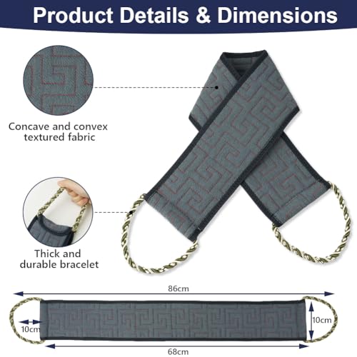 LOPHE Exfoliating Back Scrubber for Shower, 34 Inches Back Scrubber with Handles, Double Sided Body Exfoliator Bath Tool, Exfoliating Washcloth to Scrub Your Body Deeply for Men & Women (Blue Gray)