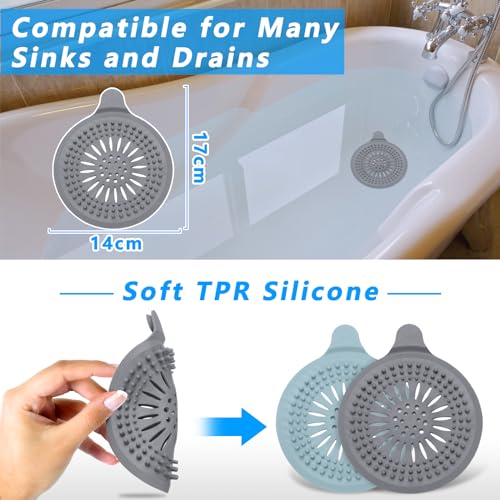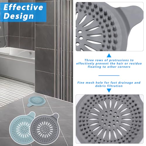 Alyvisun 2Pcs Silicone Shower Drain Hair Catcher with Sucker, Sink Strainer Hair Catcher, Shower Hair Stopper Drain Protector for Bathroom Bathtub Kitchen (Blue + Grey)