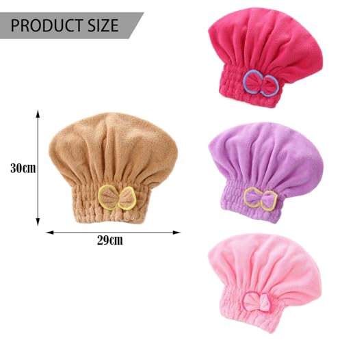 4 Pack Hair Turban Towel, Ultra Absorbent Hair Dry Cap Bowknot Hair Turban Towel, Soft Microfiber Hair Drying Towels Fast Dry Bath Head Wrap for Women, Girls