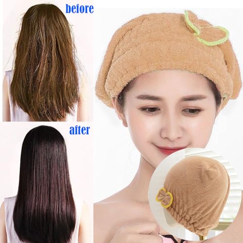 CAP DESIGN with BUTTON & ONE SIZE FITS ALL: Hat design with buttons straps are firmly stitched, rest assured to no slipping or dripping. Simple to put on than a ordinary square towel. The size of the microfibre towel hair is 27 x 35 cm that suitable for all hair types.
