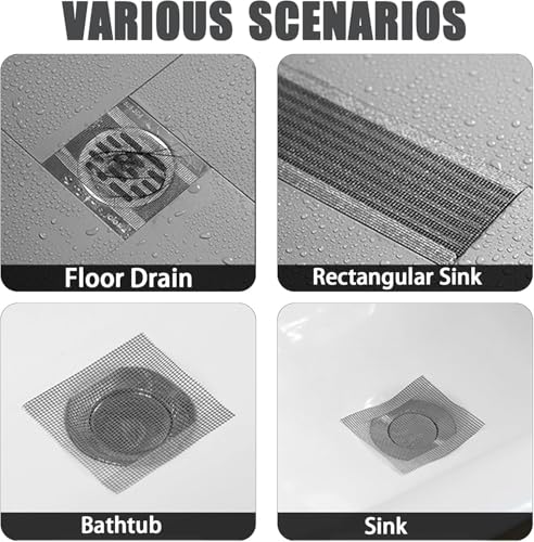 Material: The shower drain mesh sticker is made of wear-resistant PVC material. It is not easy to tear even after prolonged use in water, sturdy and durable, not easy to lose adhesion, which reduces sewer clogging.