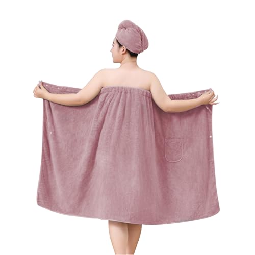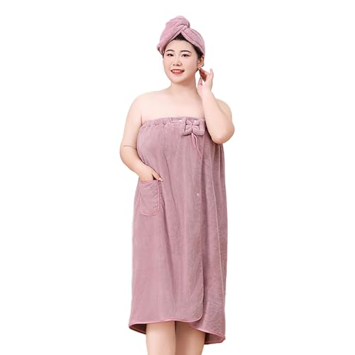 Moonlove Women Plus Size Wrap Towel & Hair Drying Cap Set Wearable Spa Shower Bathrobe Strapless Cover Up Bathing Robe Water Absorbent Body Towel Dressing Gown Suitable for 175-240lb