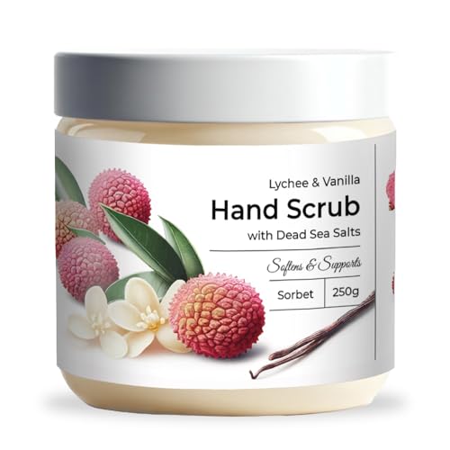 Indulgent Vanilla & Lychee Scent – Our dead sea salt scrub provides an indulging hand wash with a luxurious blend of warm vanilla and exotic lychee. Enjoy a delightfully sweet and fruity aroma, making every hand care routine feel like a treat, leaving you with an inspiring scent for better and more confident days.