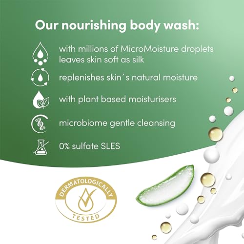 Wish you could start each day with a Body Wash that’s a joy to use? Look no further – Dove Advanced Care Hydrating Care body wash adds a blissful burst of energy to every shower. This light and bubbly lather is infused with aloe and birch water scent, making it an invigorating and wonderfully refreshing body cleanser that moisturises skin to kickstart your day with. Unlike ordinary body washes, Dove Advanced Care is made with 24 hour Renewing MicroMoisture. A ground-breaking new technology from Dove that deposits millions of tiny but powerfully moisturising droplets that, instead of getting washed off, absorb deeply and continuously work with your skin’s natural renewal process to strengthen your skin’s barrier and help retain and boost moisture, even after you shower. This moisturising body wash with aloe and birch water wraps you up in a clean, crisp fragrance, leaving your skin feeling soothed and replenishing your dehydrated skin. And that’s not all – this formula uses a blend of naturally derived mild cleansers and skin natural nourishers to gently cleanse your skin and nourish your microbiome. The 94% bio-degradable* shower gel formula is made with naturally derived cleansers, skin-natural nutrients and 0% sulfate SLES to gently cleanse your skin while nourishing its microbiome. It is also PETA-Approved Vegan and packaged in 100% recycled plastic bottles**. For best results, squeeze the product generously between your palms or onto a shower puff, work into a creamy lather and massage all over your body, then rinse thoroughly. Use this Dove body wash as part of your daily skin care routine for ultra-gentle cleansing and lasting nourishment with a calming scent. *94% of ingredients break down into carbon dioxide, water and minerals (OECD test methods 301, 302 or 310) **bottle excluding cap and labels