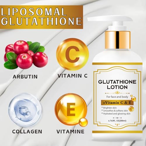 200ml Glutathione Brightening Body Lotion, Fair-and-White Body Lotion for Dry Skin, Venature Glutathione 50x Whiten, Deep Hydration Skin Lightening Cream, Anti-Aging Firming Moisturiser
