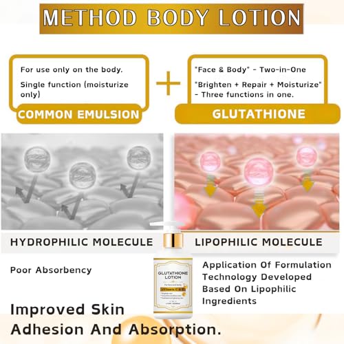 【Targeted Care for Face & Body】Perfect for body skin care and delicate facial areas, this formula works as both a skin brightening cream for face and a reliable skin brightening body lotion can use. With glutathione and lightweight hydration, it smooths, softens, and improves clarity from head to toe.