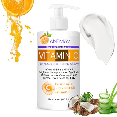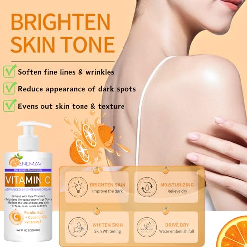 Vitamin C Body Cream 300ml – Large-Capacity Vitamin C Body Lotion with Coconut Oil & Vitamin E for Dry Skin – Advanced Brightening & Hydrating Body Lotion for Smooth, Radiant Skin