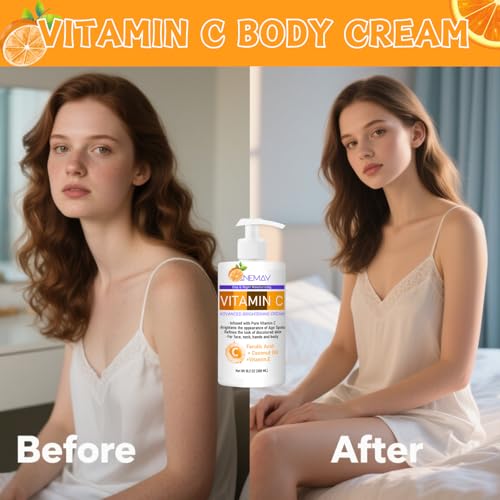 🍊【Effective Anti-Aging Ingredients】This Vitamin C Body Lotion is infused with Ferulic Acid, Vitamin C, Cocount Oil, Vitamin E & Aloe Vera, which all work together to effectively firm skin and reduce the appearance of sun damaged skin, wrinkles, fine lines. It’s very suitable for body care.