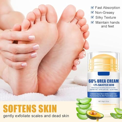 【Applicable to Multiple Parts】: This foot care cream is perfect for feet, heels, hands, ankles, elbows, legs, toenails and knees. Our 60% foot urea cream is suitable for all skin types, softening and nourishing thick and rough skin, while gently removing scales and dead skin, bringing a perfect skin care experience.