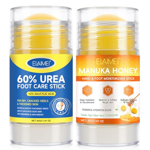 Urea Foot Cream and Manuka Honey Moisturizing Stick, Urea Cream 60 Percent for Feet, Foot Cream for Cracked Heels and Dry Skin, Cracked Heel Repair Cream, Foot Moisturiser, 40g