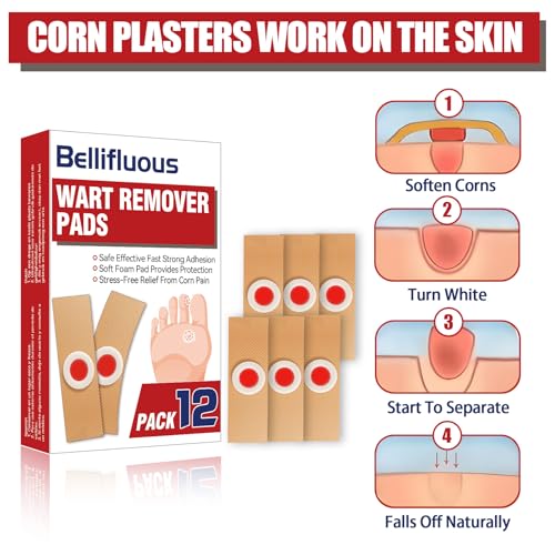 Bellifluous Verruca Treatment, 12 Pack Wart Remover Corn Plasters, Corn Callus Remover for Feet Toes Hands, Gentle and Safe Verruca Plasters, Wart Removal for Relief Corn Pain, Foot Care
