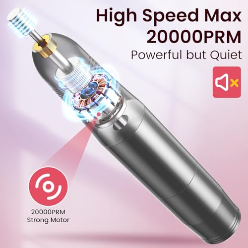 Electric Nail File, Professional Nail Drill Machine 20000RPM Adjustable Speed Manicure Pedicure Set, Low Vibration Electric Nail Drill for Gel Acrylic Nails for Beginner Girl Women Mum