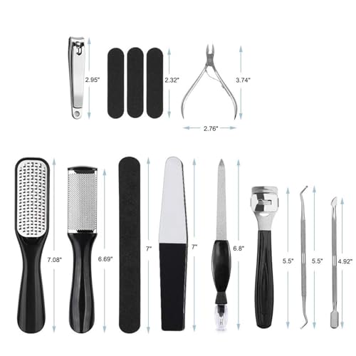Professional Foot Scrubber Pedicure Sets for Feet Pedicure Tools Set Foot File Pedicure Kit Stainless Steel Foot File Pedicure and Manicure Set 22 in 1 Foot Care Kit Women Men Salon or Home(Black)