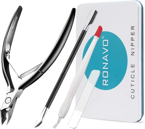 RONAVO Cuticle Trimmer Set – Includes Cuticle Nippers, Cuticle Pusher, Glass Nail File, Cuticle Cutter.Professional Cuticle Remove Kit Stainless Steel Extremely Sharp Cutter Pedicure Manicure Tool