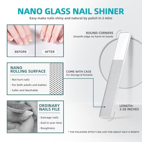 ✨【Magic Visible Polishing Result】For the final step of your manicure, use a nano glass nail file to polish and polish the nails. Glass nail file, made of high-density nano glass, is a harmless nail tool highly recommended by dermatologists. Simply gently polish off the smallest nail layer and it takes 30 seconds to make the nails beautiful, healthy, and shiny!