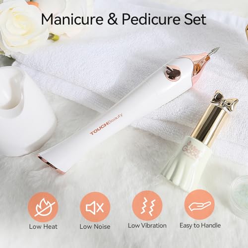 TOUCHBeauty Manicure Pedicure Nail Files Set, Manicure Drill Set, 5 in 1 Portable Nail File Drill System for Salon-Quality Care of Hands and Feet at Home, Battery Powered, AG-1335C (Gold)