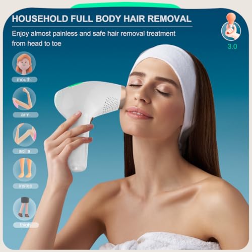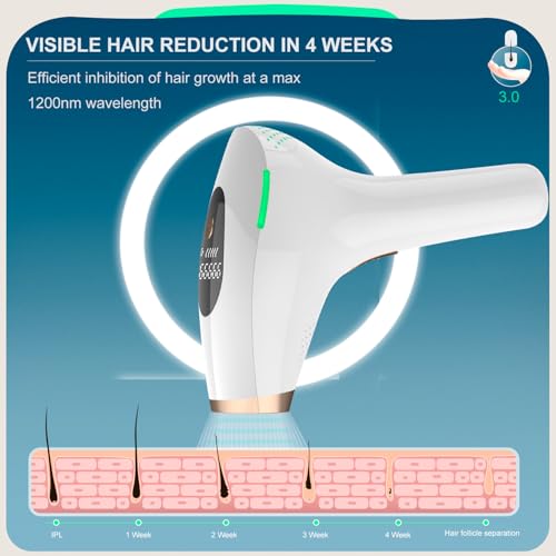 600NM-1200NM Wavelength : NALONE Laser Hair Removal uses advanced 3.0 IPL technology with 600-1200NM wavelengths to quickly penetrate the root of the hair follicle and break the hair growth cycle, helping you to remove hair more effectively and completely. Highly effective IPL epilators deliver up to 94% hair removal after 4-8 weeks of treatment. Helps you achieve salon-quality results.