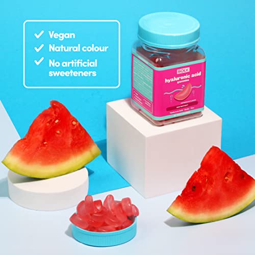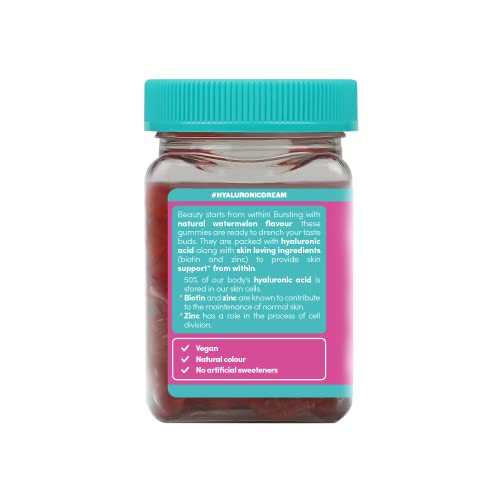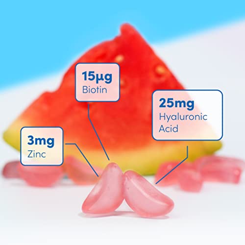 Hyaluronic Acid Vegan Gummies Supplements Vitamins Biotin Zinc Skin Hair Nails Support Beauty Women Men Health (60 chewable Gummy), Watermelon Flavour