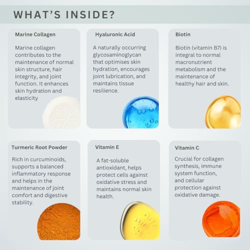 IMPROVED SKIN HEALTH: Marine collagen enhances skin elasticity and hydration, reducing the appearance of fine lines and wrinkles.