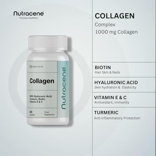 Premium Collagen Complex with Biotin, Hyaluronic Acid, Vitamin E, C & Turmeric | Made in The UK to GMP Standards | Advanced Beauty Support for Skin, Hair & Nails | 60 Capsules