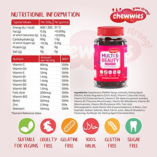 ✔️DELICIOUS MULTIVITAMIN & BEAUTY GUMMIES – contains a perfect blend of your daily multivitamins with an additional blend of nutrients and antioxidants to support a healthy and beautiful body