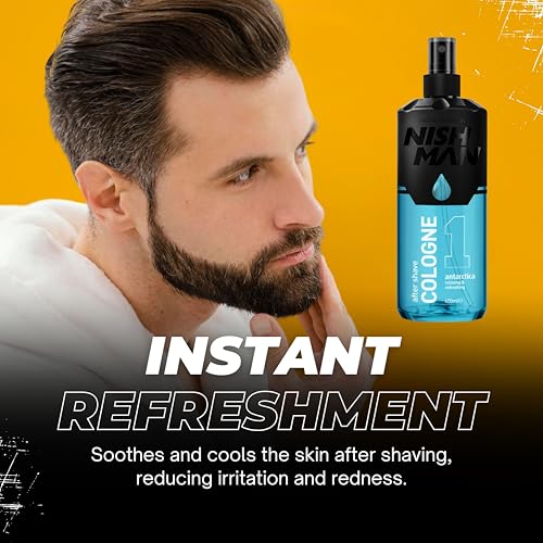 NISHMAN Aftershave Cologne 01 – Antarctica 400ml – Refreshing After Shaving Spray Lotion for Men – Scent of Citrus, Grapefruit, Tangerine, Sea Water – Mens After Shave Cologne