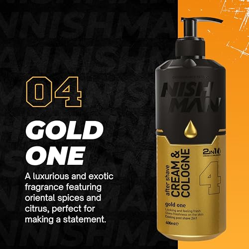 LONG-LASTING FRESH FRAGRANCE – The fragrance of NISHMAN Aftershave Cream & Cologne 04 Gold One is a blend of bergamot, lavender, amber, vanilla, and musk, leaving you smelling fresh for hours. Its subtle yet captivating scent is ideal for any occasion, making it a perfect choice for men who appreciate a long-lasting, refined fragrance post-shave.