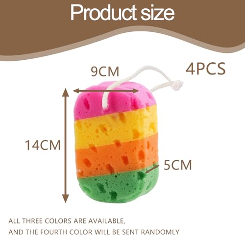 4 Pcs Bath Sponge Kids, Bath Sponges for Shower, Ultra-Soft Exfoliating Sponge for Men Women und Kids Sensitive Dry Skin 【Colorful Shower Sponge】: The body sponges for shower are soft and won’t leave scratch marks on your skin, available in 4 different colors, ideal for the whole family, with just a small amount of soap, these sponges shower create a generous amount of suds for effective cleansing, suitable for sponge bath and sponges bath. 【Soft & Suitable】: Made with soft, cushiony sponge material, these bath sponges are for children and men alike, they offer gentle cleaning to keep skin soft and healthy, including exfoliating bath sponges and bath cleaning sponge. 【Revitalize & Massage】: The multipack of bath massage sponges provides plenty of foaming, helping to cleanse dirt and sweat from the skin, the circular-shaped shower sponges for family and kids make skin smooth and delicate, suitable for removing surface impurities, including kids bath sponge and baby bath sponge. 【Rich Foam, High Absorbency】: The shower sponges have strong water absorption, ensuring an enjoyable bathing experience, they lather well with just a little soap, making them efficient for daily use, perfect for shower sponges for women and shower sponges for men. 【Sturdy & Reliable】: Soft yet durable, these sponges maintain their shape after frequent use and resist odor buildup, baby sponges for bath are gentle on delicate skin, while kids sponges for bath and shower sponges for men can be used with confidence.
