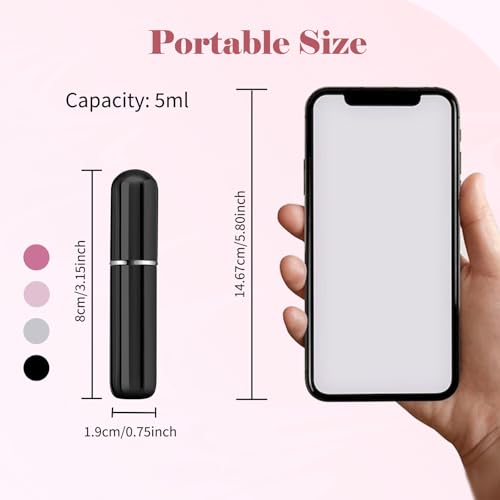 TRAVEL COMPANION: Our mini perfume refill bottle is 93mm long and 19mm in diameter and fits easily into your purse, pocket, handbag or suitcase. It holds 5 ml of perfume.
