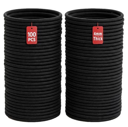 KEAH 100pc Black Elastic Hair Bands for Women – Hair Ties 4 mm – Elastic Bands Hair Bobbles for Women – Hairbands Girls – Hair Bands For Men (100 Hairbands, Black)