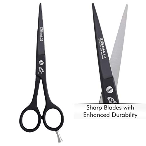 CUTTING YOUR HAIR CAN SAVE YOU A LOT OF TIME AND CASH BUT YOU’LL NEED THE RIGHT TOOLS.For the barbers who are engaged in cutting hair daily, thinning scissors have to bethe significanttools of the trade containing finger support.Superior QualityThe Hairdressing scissors are made of stainless steel, with extremely sharp blades for clean-cut, evenly trim hair with ease.Sharp, Smooth, and EfficientProfessional Hairdressers Scissors come with convex edge blades. So, it will require less force and pressure and provide and quick and smooth cut.For Everyone’s useThe professional barber hair cutting scissor is safe and easy to use on Everyone including men, women, the elderly, and children. It can be a perfect gift for your son, father, husband, and friends on birthday, thanksgiving, New Year, or Christmas.Handle with care:These hair scissors for women you use are one of the most important tools of your trade. Without any doubt, they are probably one of the expensive items that you work with, and with proper care, they will give you many years of use.Cleaning of Scissors: Clean and oil your scissors regularly (around the screw head and between the blades once a day). Do not use just any oil. We recommend using CRC Syntax – a fully synthetic silicon-free lubricant appropriate for scissors.Specification:Color: BlackMaterial: Stainless SteelSize: 6.5 inchBrand: Promax Fit’sDo not store in a bag or box:The tips can be damaged, nicks can occur as well as other physical damage to your bag. Use a specially designed professional shear case, a fabric tool roll, a wallet, or an acrylic stand to store your scissors.Click on ADD TO CARTto get your Scissor f