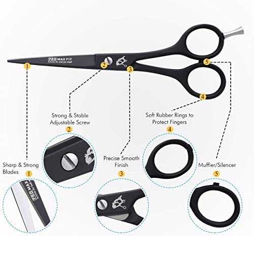 PromaxFit Hairdressing Scissors – Barber Scissors for Hair Cutting – Professional Hair Scissors with Adjustable Screws – Black Stainless Steel Hair Cutting Scissor – Hairdressing scizzors with Comb