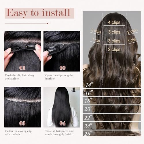 Function: Use clip in hair extension to add hair volume, length or highlights. There are 8pcs 18 clips in extension sizes to choose and use as many or as few of the pieces as you want to create different looks.
