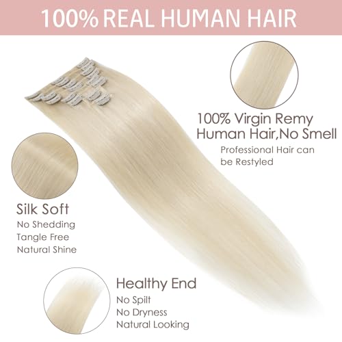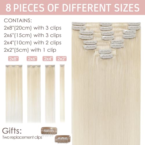 Silk-co Clip-In Hair Extension 8 Pieces Smooth Shiny Hair Extension Natural Human Hair Natural Thick 8 Inches/20 cm, Platinum Blonde