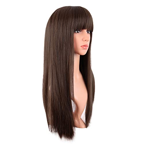 MapofBeauty 24 Inch/60 cm Long Straight Synthetic Hair Heat Resistant Party Cosplay Wig (Brown)