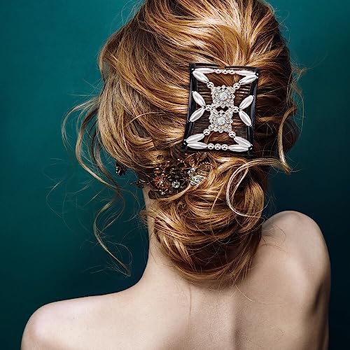 [Convenient to Use] – Elastic double insert design, hold hair firmly. The double hair combs for women can make dozens of different hairstyles, which is easy for hair styling making. Just slide the comb to one side, hold and stretch the other comb to fit the other side.