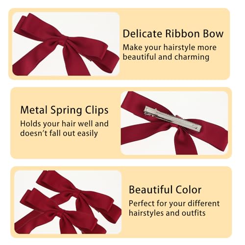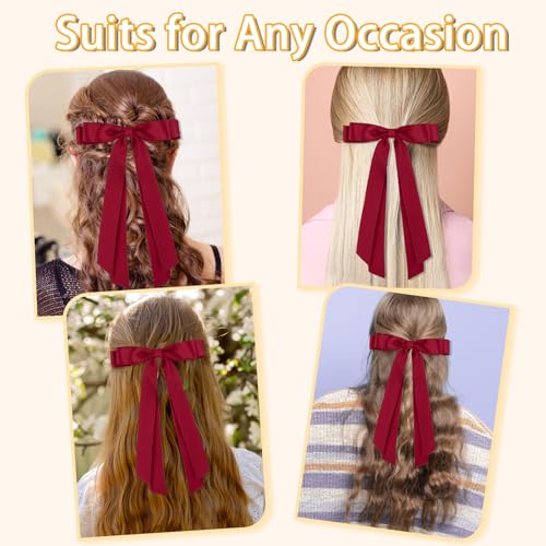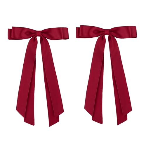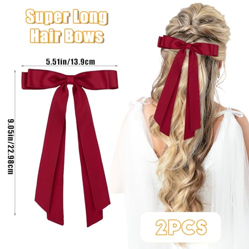 Qianyu 2Pcs Big Bow Hair Clip Long Tail Bowknot Ribbon Bows Tassel Barrette Metal Hairpin Cute Ponytail Holder Hair Accessories for Parties Thick Thin Curly Hair Styling Women Girl Teen