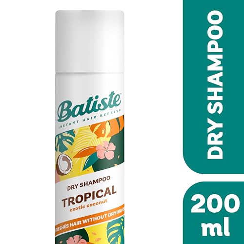 Batiste Dry Shampoo in Tropical 200ml, Coconut & Floral Fragrance, No Rinse Spray to Refresh Hair in Between Washes