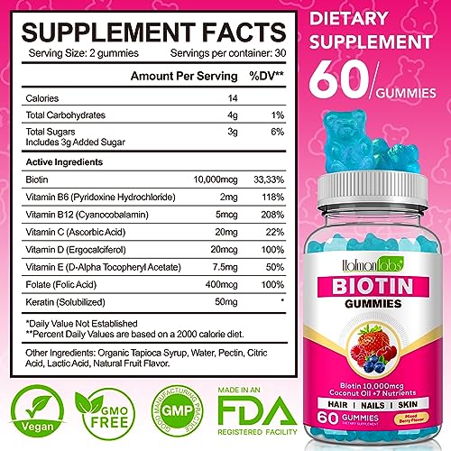 Be the first to review “Biotin Hair Growth Supplement 10,000 mcg-Chewable Biotin Gummies for Skin, Hair & Nails-Hair Vitamins for Growth and Hair Loss with Coconut Oil, Vitamin B6, C, & E”