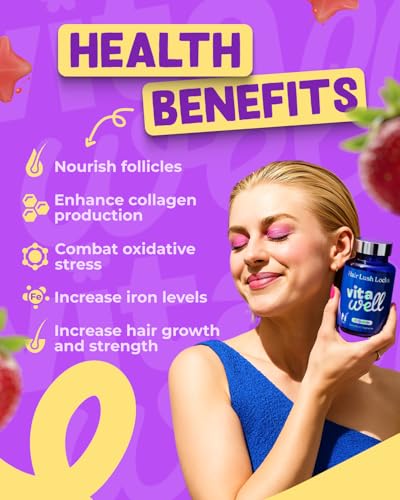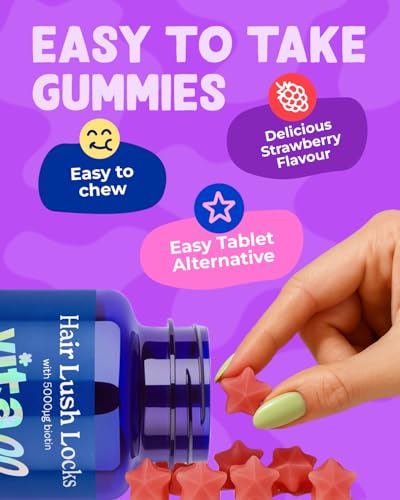DELICIOUS MIXED BERRY FLAVOUR SUITABLE FOR VEGETARIANS: Take 2 gummies of Vitawell Lush Locks Hair Gummies (60 Gummies) for optimal hair growth, maintenance and repair. Scientifically formulated to boost your hair and skin repair and generation, in a super tasty gummy to take on the go. Suitable as a hair supplement for vegetarians, men and women.