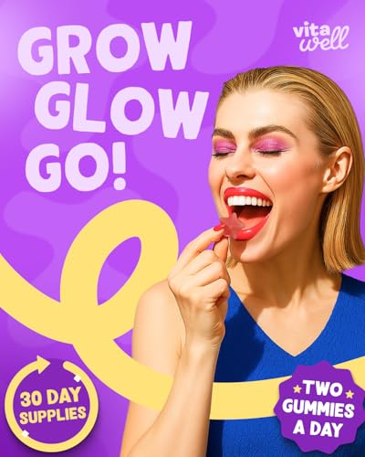 HIGH STRENGTH HAIR GROWTH GUMMIES – Each daily serving (2 gummies) provides an easy and delicious way to support your daily beauty regime. Vitawell Lush Locks Gummies provide extra strength for your hair, preventing breakage and overall stronger, healthier hair through a bespoke ingredient formula, encouraging cell growth and repair.