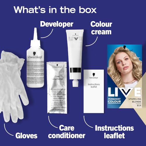 Schwarzkopf LIVE Intense Colour Sparkling Blonde Permanent Hair Dye B14, Long Lasting Blonde Hair Colour for Up to 80% Less Hair Breakage, Hair Lightener with anti-brassiness effect
