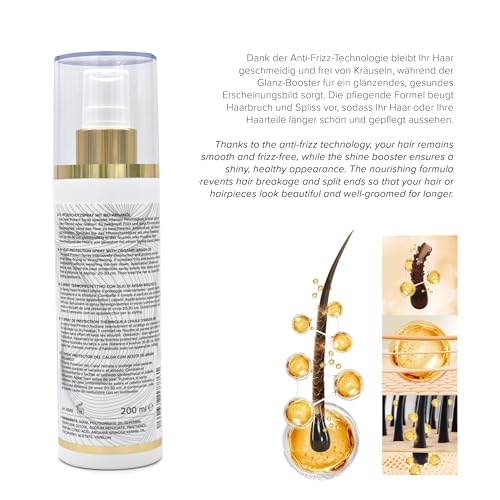𝐏𝐫𝐨𝐟𝐞𝐬𝐬𝐢𝐨𝐧𝐚𝐥 𝐡𝐞𝐚𝐭 𝐩𝐫𝐨𝐭𝐞𝐜𝐭𝐢𝐨𝐧: Reliably protects your hair, extensions and human hair wigs from heat damage caused by straighteners, curling irons and hair dryers. The advanced formula protects your hair from temperatures of up to 230 °C and prevents hair breakage and moisture loss. Perfect for daily styling and intensive use – for healthy, strong and radiant hair.