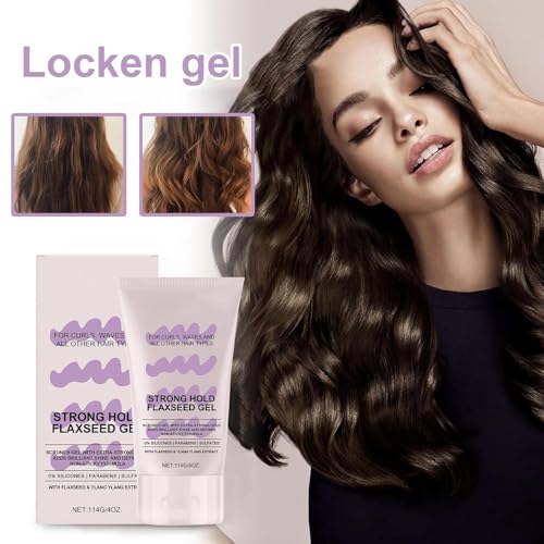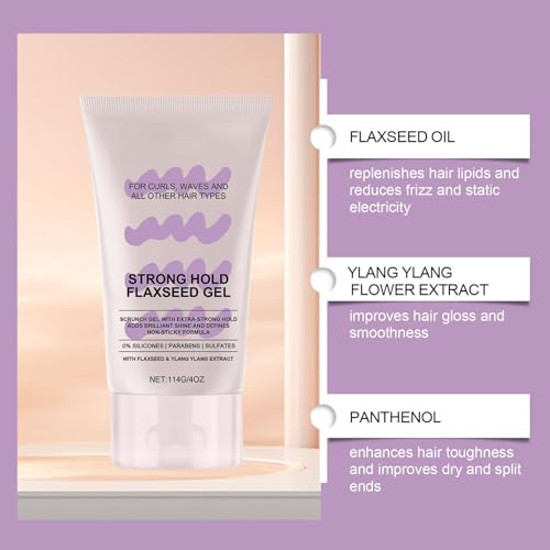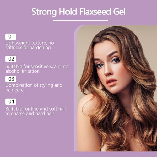 Strong Hold Flaxseed Gel, Smoothing Extra Strong Scrunch Gel For Defined Curls, Long Lasting Space Saving Curl Styling Cream, Repair Damaged Curls Products For Daily Weekly Monthly Routine