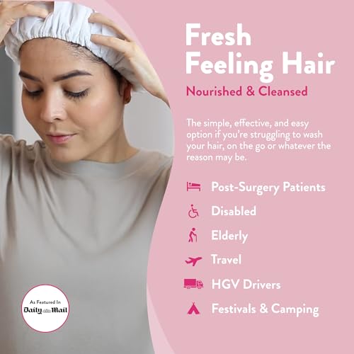 SHAMPOOS & CONDITIONS: Suitable for all hair lengths and types, this cap can be used for all scalps and most hair lengths from bald/short to shoulder length. Ideal for post surgery patients, the elderly or disabled. They’re also convenient to take camping or festivals and for HGV drivers who don’t have easy access to showers.