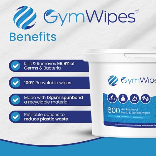 Be the first to review “Gym Wipes – 600 Heavy-Duty Antibacterial Wipes in Bucket Dispenser – Eliminates 99.9% of Germs – Perfect for Gyms, Fitness Studios, Health Clubs, Offices & Homes – Refillable Bucket”