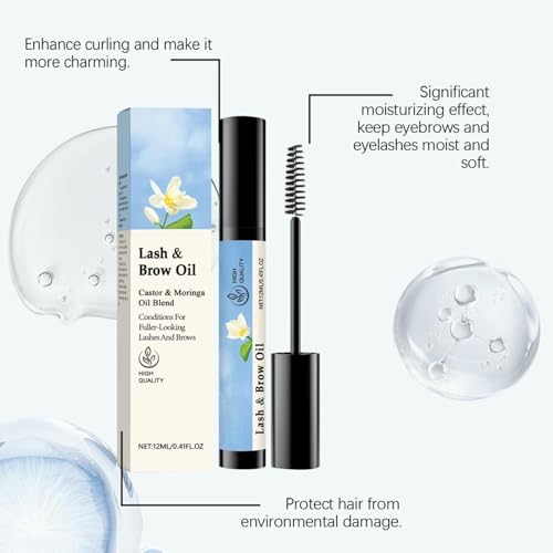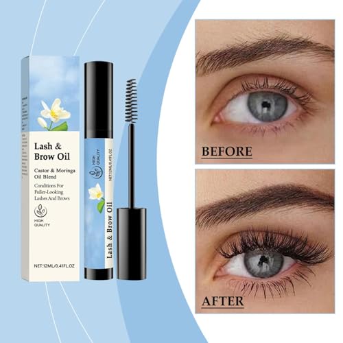 Lash & Brow Oil & Applicator – Eyelash Serums – Castor Oil Organic – Portable Eyelash And Brow Oil Eyebrow Enhancer To Boost Lashes For Women 12mL